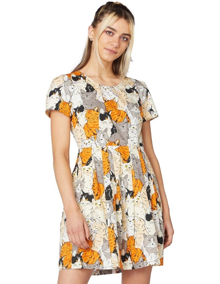 - Quirky Cat Cotton Dress White